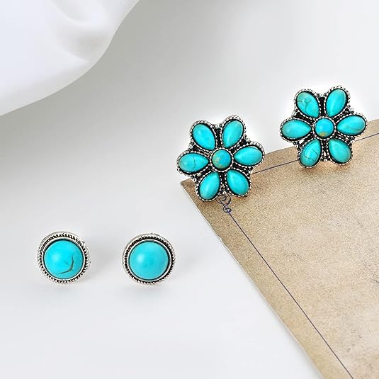 Classic design: Each pair is inlaid with high-quality turquoise, combining the soft aquamarine hue of the stone with silver-toned metal for a timeless look that carries subtle charm. The set includes a variety of styles, making it easy to pair with different clothing styles—from casual to more polished looks.