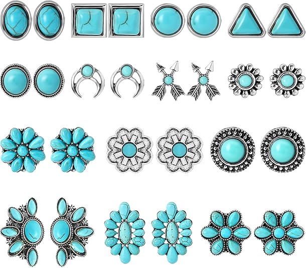 What you’ll receive: You’ll get 14 pairs of turquoise stud earrings for women. With such a generous quantity, they’re perfect for daily wear, and their unique styles can bring fresh flair to any outfit you put together.